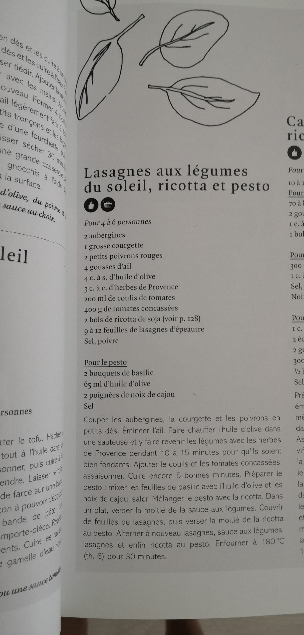 - Dans un plat, verser la moitié de la sauce au légumes. Couvrir de feuilles de lasagnes, puis verser la moitié de la ricotta au pesto. Alterner à nouveau lasagnes, sauces au légumes, lasagnes et enfin ricotta au pesto.